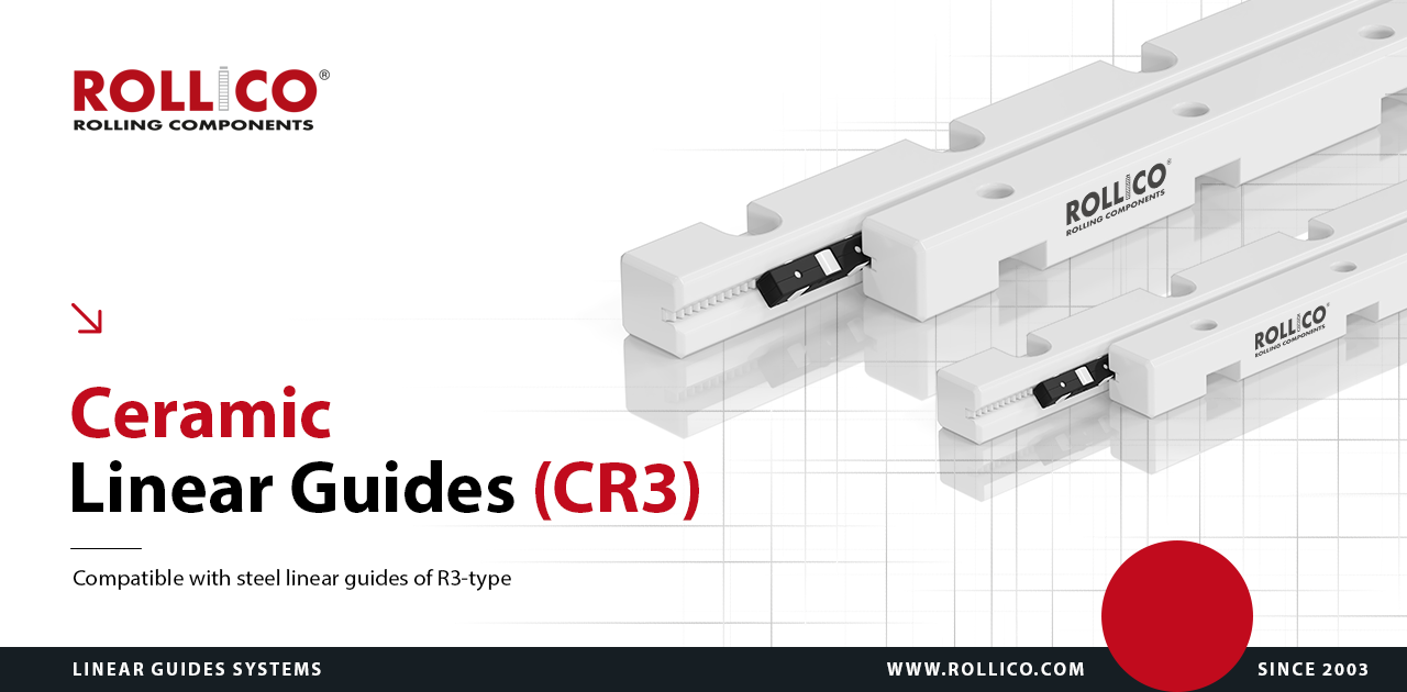 CR3-type ceramic linear guides are dimensionally compatible with R-type steel guides but they offer several advantages: they are lighter, non-magnetic, and anti-electrostatic. Like R-type linear guides, they also feature a V-shaped profile, allowing for the use of RRK, AA, RKK, or SRK cages with rolling elements made from bearing steel, stainless steel, or ceramics (Si₃N₄, Al₂O₃, ZrO₂).