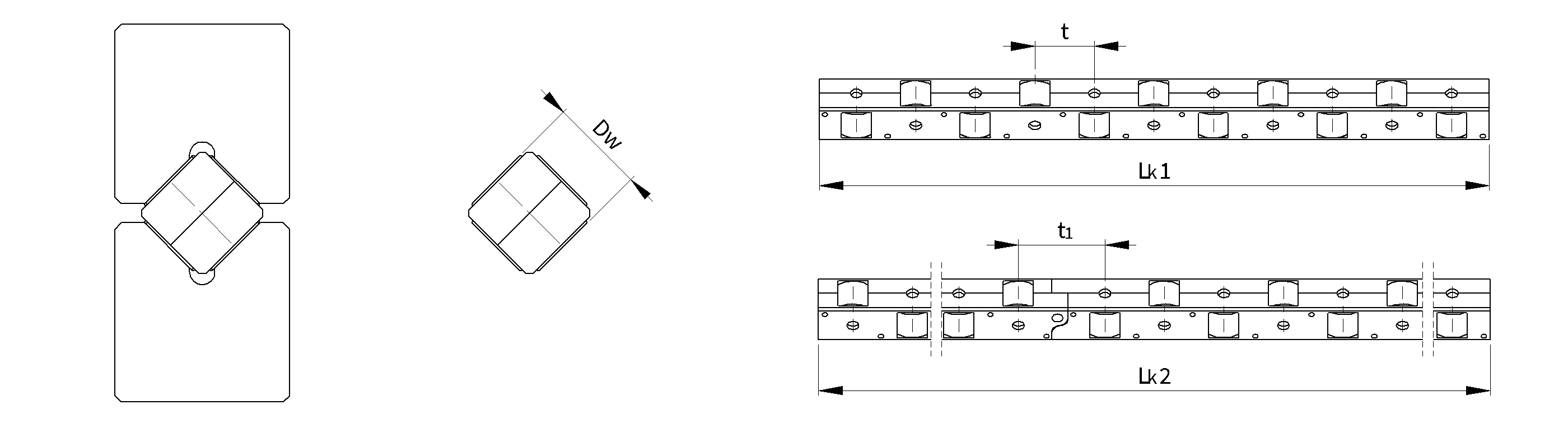 - Nośność odnosi się do prowadnic o głębokim profilu V (w którym wałek styka się z bieżną na całej długości Lw) o twardości 60 +/- 2 HRC oraz gładkości powierzchni Ra<0.4