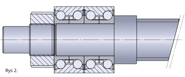 Rys.1 Najprostszym rozwiązaniem jest wykonanie czopu łożyskowego o średnicy nominalnej optymalnej w stosunku do średnicy nominalnej śruby tocznej. W idealnym przypadku powierzchnia odsadzenia pod średnicą rdzenia śruby pociągowej tocznej jest już wystarczająca do przejścia sił łożyska z występującym obciążeniem powierzchniowym.