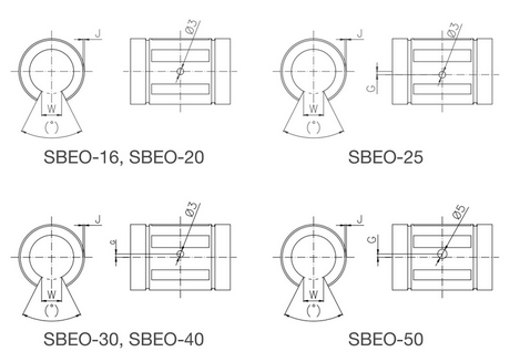 Liniowe tuleje łożyskowe typu SBE z wyrównaniem błędu prowadzenia (seria standardowa, wersja zamknięta i otwarta)