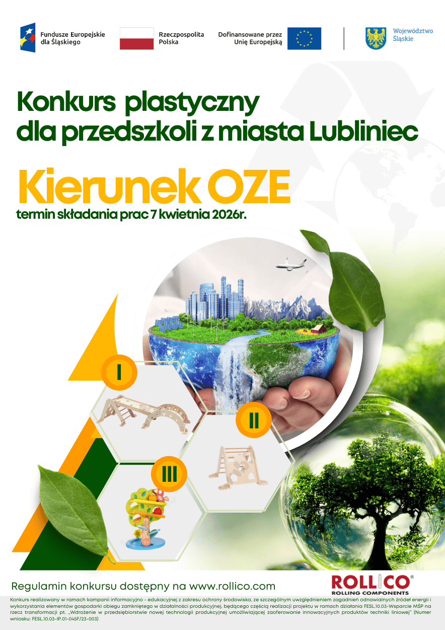 Konkurs realizowany w ramach kampanii informacyjno - edukacyjnej z zaresu ochrony środowiska, ze szczególnym uwzględnieniem zagadnień odnawialnych żródeł energii i wykorzystania elementów gospodarki obiegu zamkniętego w działalności produkcyjnej, będącego częścią realizacji projektu w ramach działania FESL.10.03- Wsparcie MŚP na rzecz transformacji pt. "Wdrożenie w przedsiębiorstwie nowej technologii produkcyjnej umożliwiającej zaoferowanie innowacyjnych produktów techniki liniowej" (Numer wniosku: FESL.10.03-IP-045F/23-003).