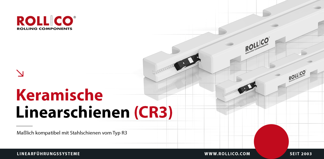 Keramische Linearschienen des Typs CR sind maßlich kompatibel mit Stahlschienen des Typs R, bieten jedoch zusätzliche Vorteile: Sie sind leichter, nicht magnetisch und antistatisch. Wie R-Schienen verfügen sie über ein V-Profil, wodurch der Einsatz von Käfigen der Typen RRK, AA, RKK oder SRK mit Wälzkörpern aus Wälzlagerstahl, Edelstahl oder Keramik (Si₃N₄, Al₂O₃, ZrO₂) möglich ist.
