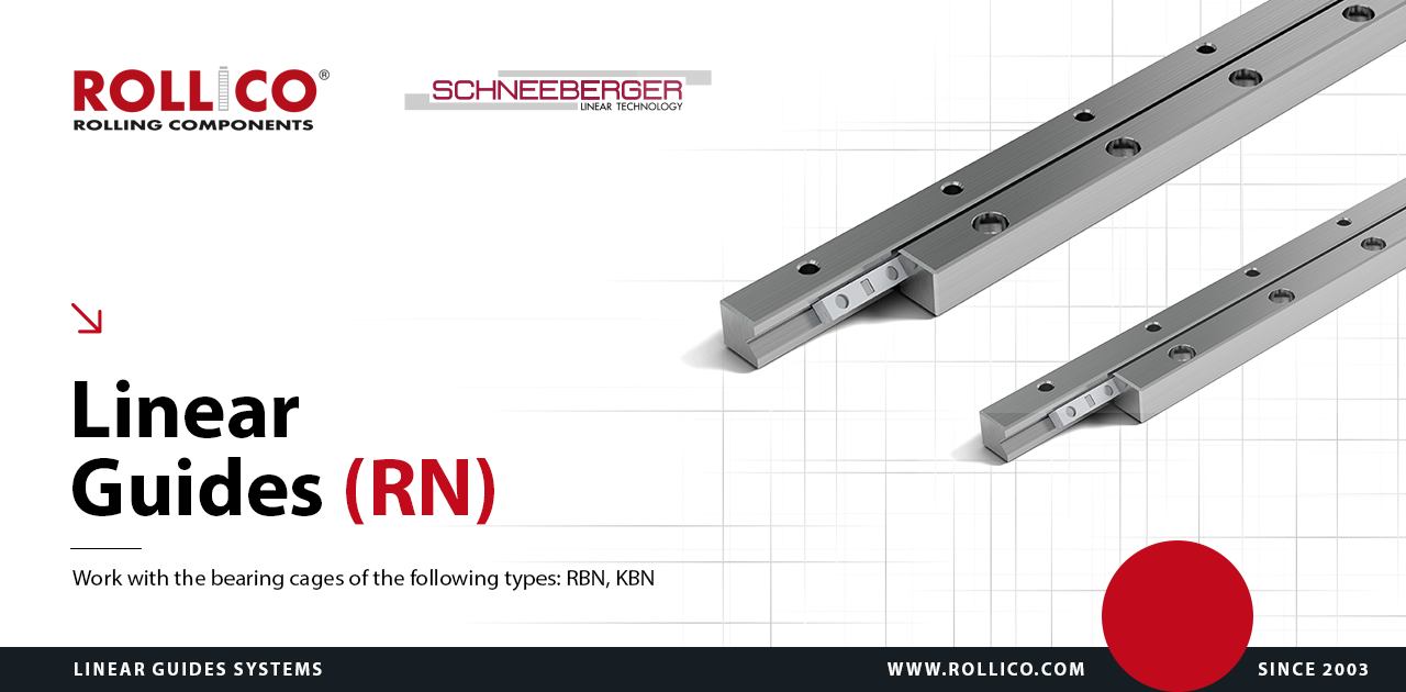 Additionally, smaller gap between RN linear guides improves their resistance to contamination. RN-type guides are compatible with RBN and KBN bearing cages.