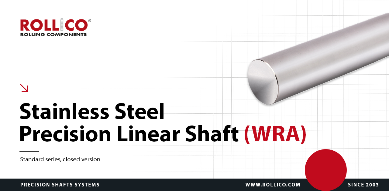 Precision linear shafts, designated as WRA_h6 are made of induction-hardened and ground X90CrMoV18 stainless steel.