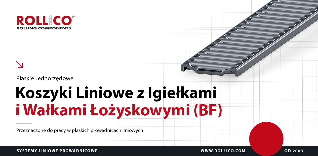 Płaskie jednorzędowe koszyki liniowe z igiełkami i wałkami łożyskowymi