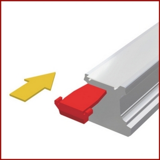 Wykonane z tworzywa końcówki EST służą do zamknięcia końców listew maskujących BAC. W tym celu końcówki wkłada się po obu końcach szyny w szczelinę pod listwą maskującą. Ich specjalna konstrukcja zapobiega unoszeniu się końców listwy maskującej i zmniejsza niebezpieczeństwo zranienia ostrymi krawędziami listwy BAC.