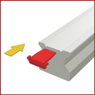 Wykonane z tworzywa końcówki EST służą do zamknięcia końców listew maskujących MAC. W tym celu końcówki wkłada się po obu końcach szyny w szczelinę pod listwą maskującą. Ich specjalna konstrukcja zapobiega unoszeniu się końców listwy maskującej i zmniejsza niebezpieczeństwo zranienia ostrymi krawędziami listwy MAC.