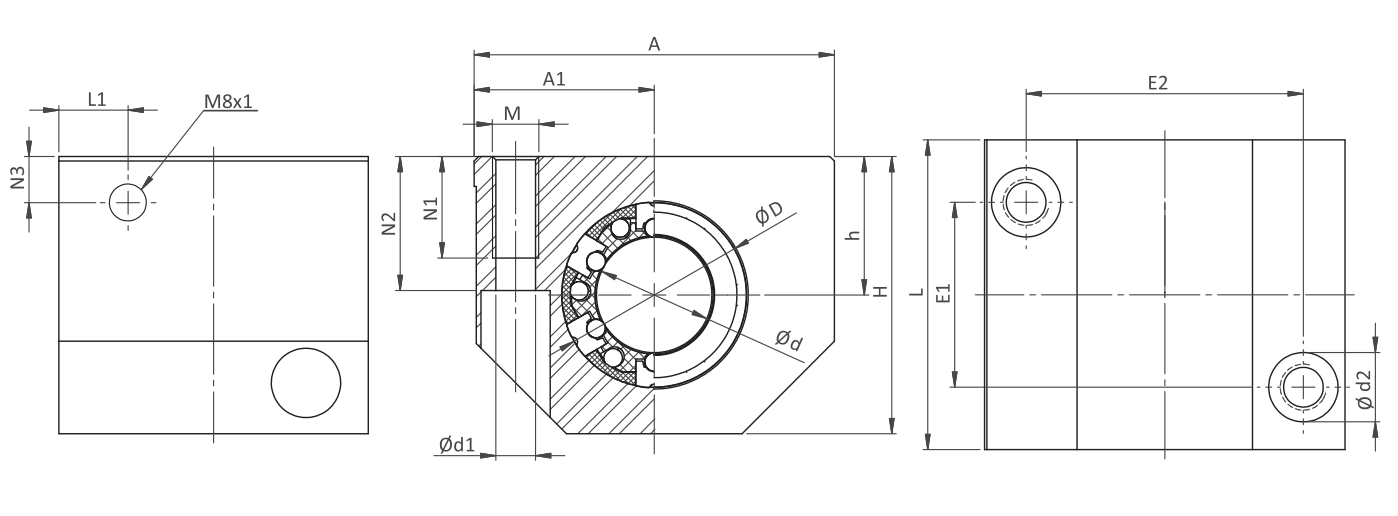 Uwaga! Na rysunku pokazana jest obudowa w formie zmontowanej razem z tuleją łożyskową.