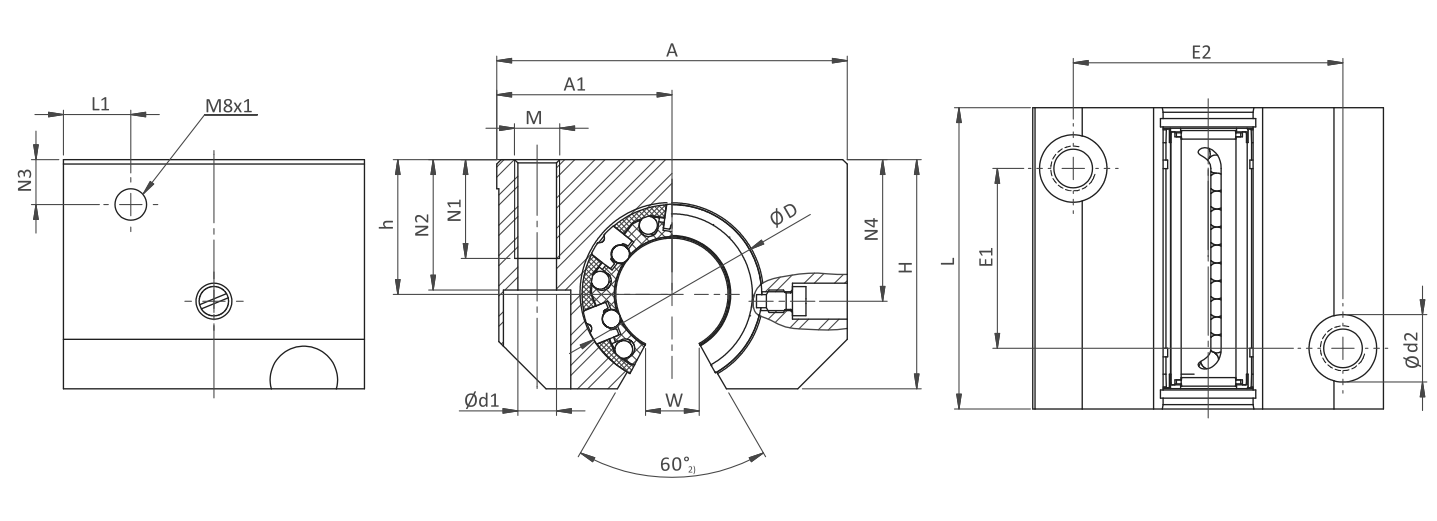 Uwaga! Na rysunku pokazana jest obudowa w formie zmontowanej razem z tuleją łożyskową.