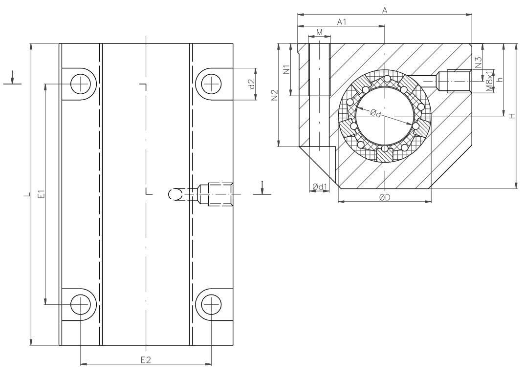 Uwaga! Na rysunku pokazana jest obudowa w formie zmontowanej razem z tuleją łożyskową.