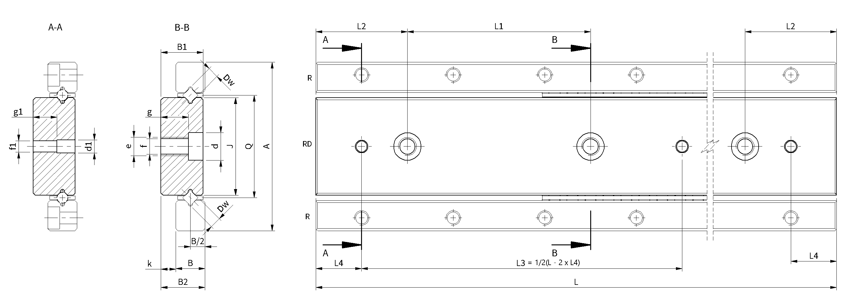 Prowadnica typu RD w kształcie podwójnej litery V uzupełnia prowadnice liniowe typu R i umożliwia realizację zajmujących niewiele miejsca rozwiązań. Podobnie jak prowadnice typu R, prowadnice RD współpracują z koszyczkami łożyskowymi kulkowymi (typ AK lub RKK) lub koszyczkami łożyskowymi wałeczkowymi (typ AA, AC lub RRK).