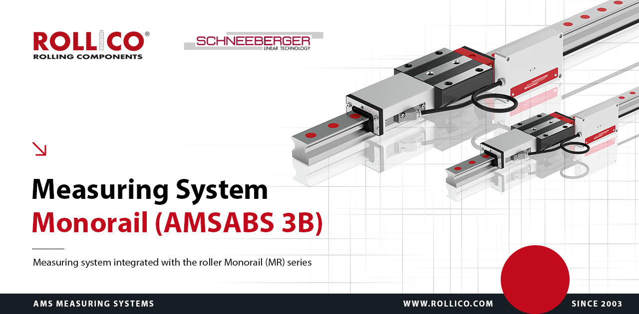 Schneeberger Monorail AMSABS 3B is an integrated absolute measurement system designed for use in automation engineering, material handling technology, and machine tool engineering, where high force absorption and precise distance measurement are required in compact installation spaces. The AMS 3B system is based on the roller guide (Monorail MR) with lengths of up to 6 meters. Integration of the measurement system enables the design of highly compact axes. Schneeberger provides an absolute interface with different cable lengths for connection to SSI, SSI+SinCos, FANUC, Mitsubishi, and Siemens Drive CliQ® controllers.