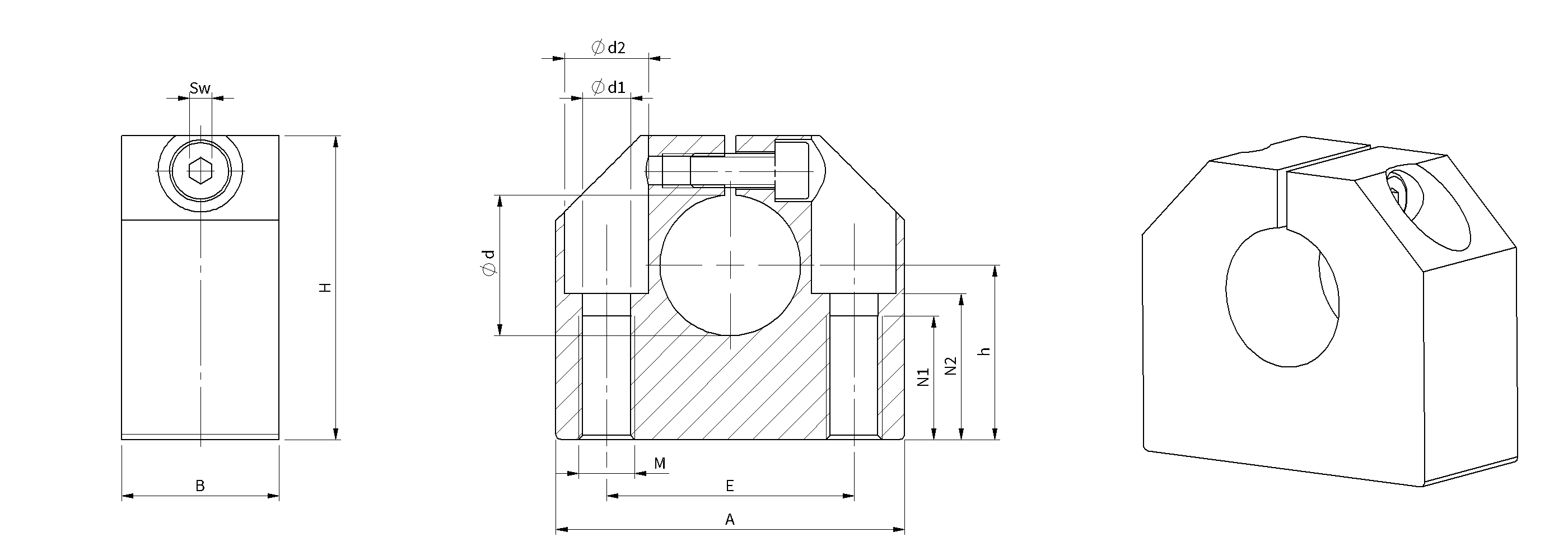 Wykonane z aluminium wsporniki końcowe wałków prowadzących zapewniają stabilne i precyzyjne zamocowanie, stanowiąc balans pomiędzy sztywnością a niską masą, co czyni je odpowiednim wyborem do układów o wysokiej dynamice i ograniczonej masie własnej.