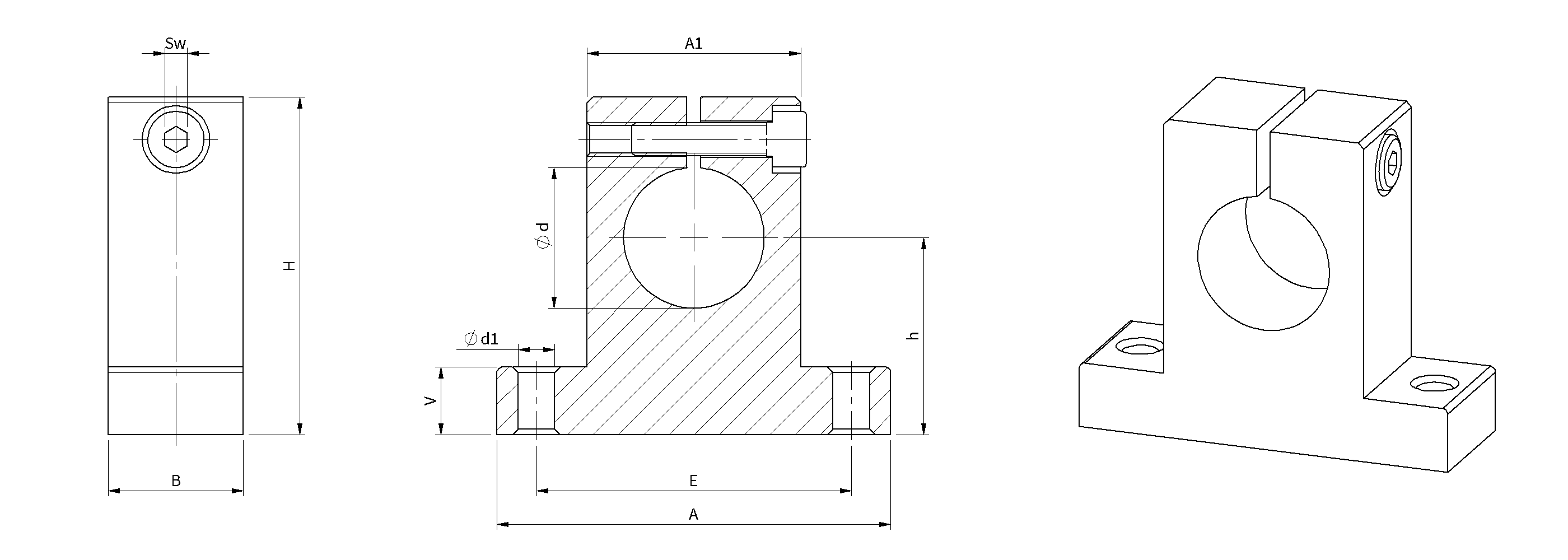 Wykonane z aluminium wsporniki końcowe wałków prowadzących zapewniają stabilne i precyzyjne zamocowanie, stanowiąc balans pomiędzy sztywnością a niską masą, co czyni je odpowiednim wyborem do układów o wysokiej dynamice i ograniczonej masie własnej.